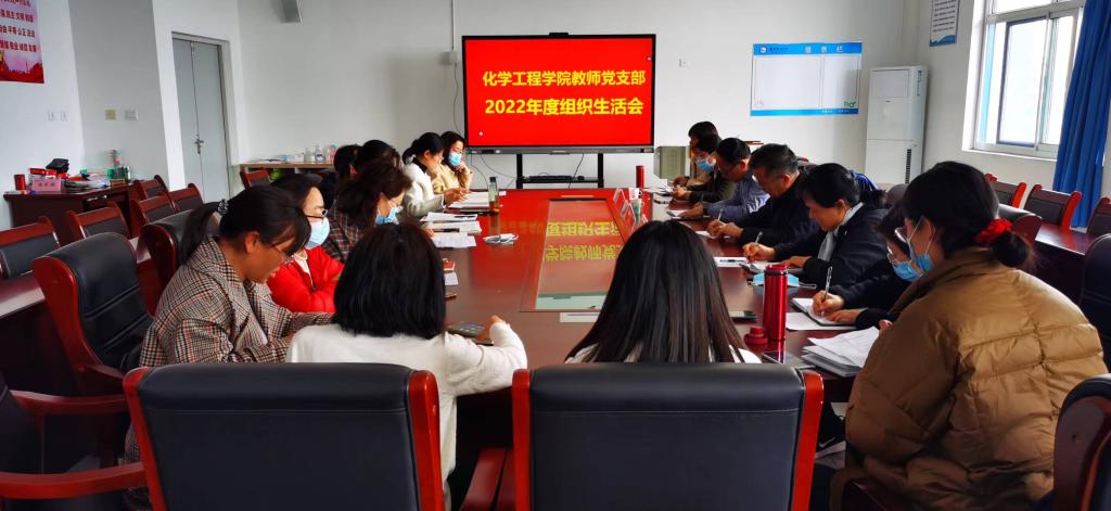 3月16日,化学工程学院党总支教师党支部、学生党支部分别在金泽楼D405室、惠泽楼A304室召开2022年度组织生活会,教师党支部联络指导员学院党委委员、学院办公室(统战部)主任(部长)任培华、纪检委员工会主席韩春妹到会督导组织生活会的开展情况。