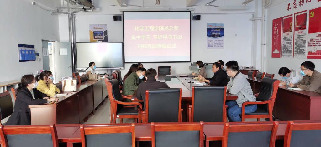 党的十八大以来,习近平总书记就教育改革发展作出了一系列重要讲话、指示批示,提出了一系列新理念新思想新观点,为更好的重温学习这些论述,4月7日,化学工程学院组织集中学习了《事关新时代教育的重要问题,总书记这样说》的学习材料。