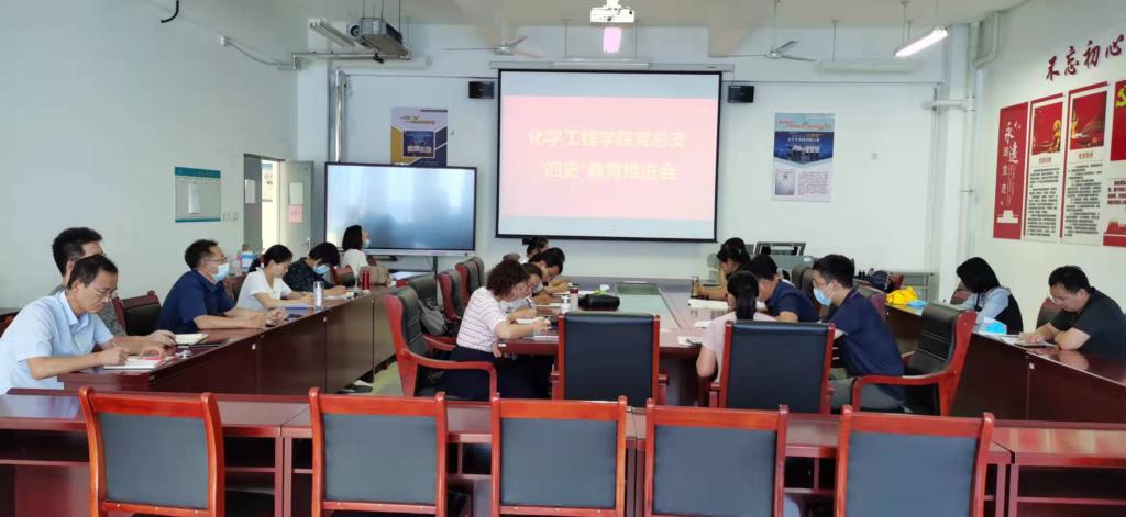 为深入学习贯彻习近平总书记在党史学习教育动员大会、庆祝中国共产党成立100周年大会上的重要讲话精神,强化以党史学习教育为重点的“四史”教育,9月2日下午,化学工程学院党总支组织全体党员在党员活动室召开“四史”教育推进会。
