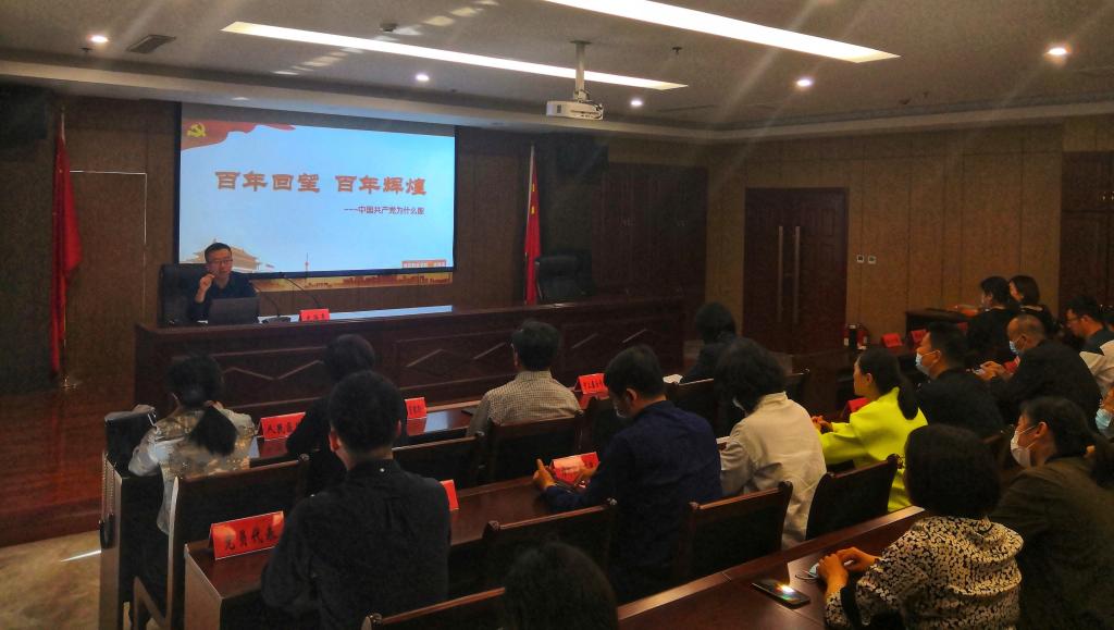 本次活动,化学工程学院党总支等五个党支部邀请学院思政课教学部形势与政策教研室史海亮主任为社区共建单位、社区党员做了《百年回望百年辉煌》的报告,史老师结合自己学习党史的体会从科学的理论指导,坚定的理论信念,强大的组织优势,坚实的群众基础,彻底的自我革命五个方面讲述了中国共产党为什么能由小变大,由弱变强,带领中国各族人民取得一个又一个辉煌成就的奋斗历程。报告深入浅出,深受到会共建单位社区党员的好评。