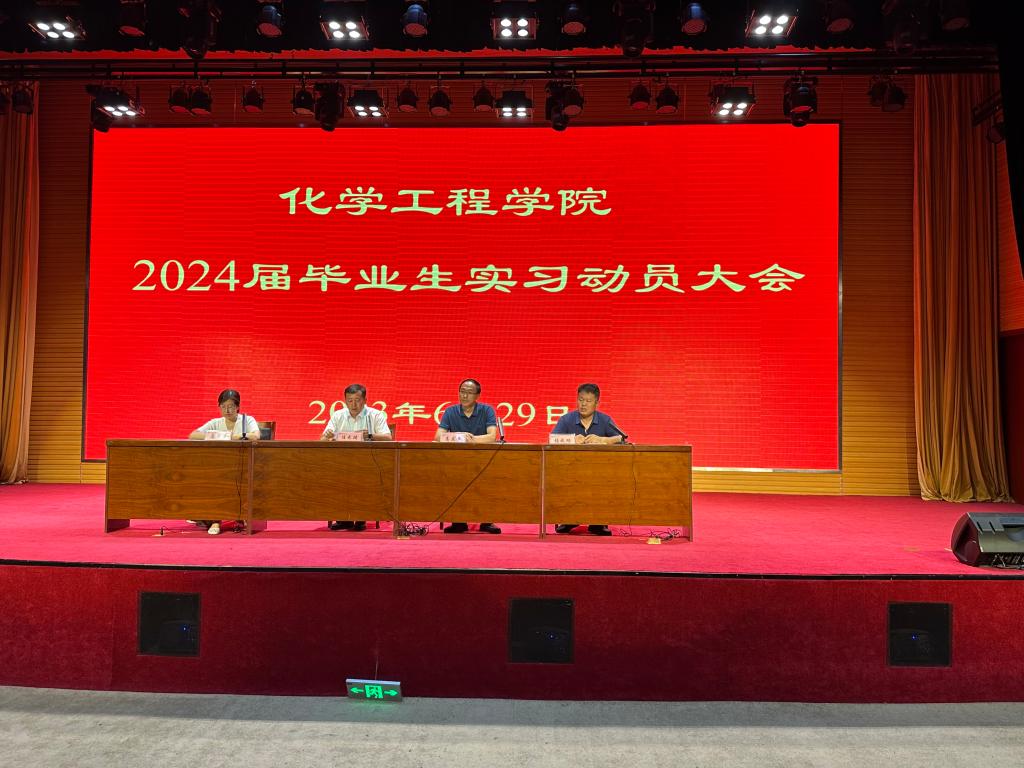 为深入学习贯彻党的二十大精神,落实立德树人根本任务,切实做好我院2024届毕业生综合实训和岗位实习工作,保障实习质量,2023年6月29日下午我院在图书馆报告厅召开了毕业生实习动员大会。学院领导班子、实习指导教师、班主任和全体实习学生出席了本次大会,大会由化学工程学院主要负责人主持。