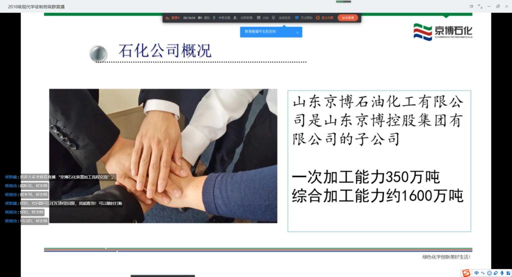 4月29日,我院现代学徒制试点合作企业——山东京博石化有限公司侯新峰对我院2018、2019级学生开展了一堂精彩绝伦的钉钉在线直播课,共有100多名学生和数位老师参加。