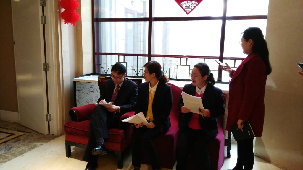 提报完申请后,项目组没有停止相关工作,开始准备接下来的答辩。先是制作了汇报PPT和汇报讲稿,参加了两次学院预答辩,之后结合答辩专家意见对汇报材料进行了细致修改,并就专家可能提出的问题进行了探讨。确定下最终答辩形式后,3月22日学院组织了模拟答辩,10余人的专家组令答辩团队异常紧张,但专家们的点评却令团队茅塞顿开、受益匪浅。24日,答辩团队奔赴济南,开始了废寝忘食的答辩准备工作。“台上一分钟,台下十年功”,答辩团队抓紧每一分钟,从早到深夜一两点钟,对每一个问题、每一个环节进行细致研讨,期间进行了多次模拟答辩,学院领导和专家不放过每一个细节,提出了很多宝贵建议,并帮助详细梳理了某些具体问题。