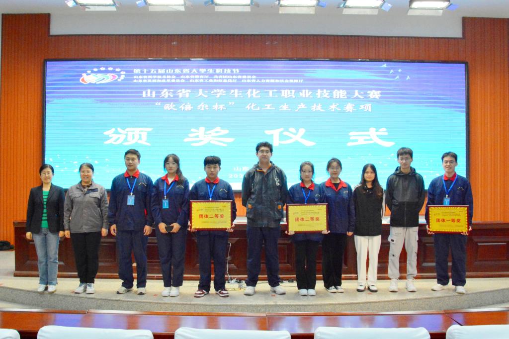 10月22日晚,第十五届山东省大学生科技节“欧倍尔杯”化工生产技术技能大赛闭赛式在潍坊职业学院举行。我院3支代表队凭借扎实的技能操作功底与良好的职业素养,沉着应对,最终斩获1项团体一等奖,2项团体二等奖。化学工程学院学生范召家、苗鑫蕊、贾继强、焦圣雨获得个人一等奖,王佳园、高彦、刘安民、褚来源、朱冰洁获得个人二等奖。