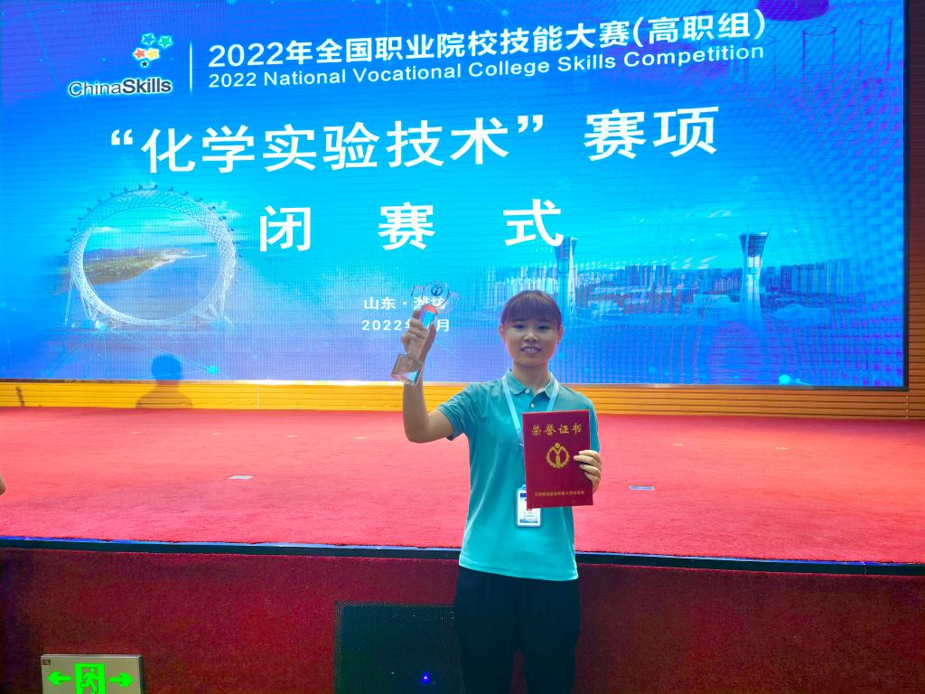 8月14-17日,2022年全国职业院校技能大赛高职组“化学实验技术”赛项在我院举行,来自全国各省(自治州、直辖市)的56支参赛队同台竞技。经过激烈比拼,化学工程学院刘玉婷同学凭借扎实的技能操作功底与良好的职业素养,沉着应对,最终斩获大赛一等奖第一名的好成绩。指导教师李雪贞荣获“优秀指导教师”称号。