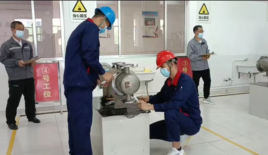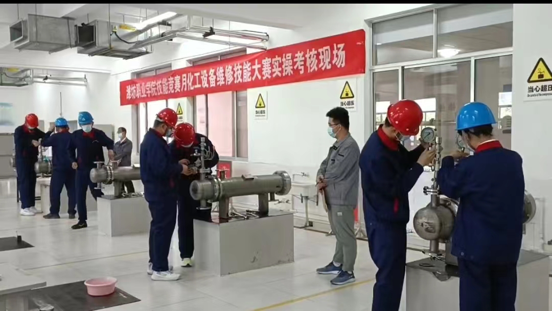 为使理论考核入围选手能够更好的进行实操比赛,化工设备维修赛项组委会组织学生进行了换热器管程拆装试压项目培训。