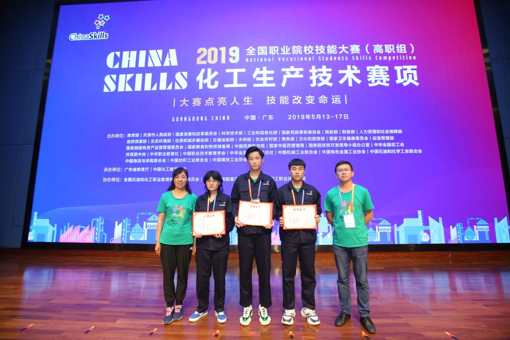 5月13日至17日,2019年全国职业院校技能大赛高职组“化工生产技术”赛项在广东佛山举行,来自全国62所职业院校的186名选手参加了比赛。我院李晓波、王钦、杜成慧3名学生组成的代表队荣获二等奖。