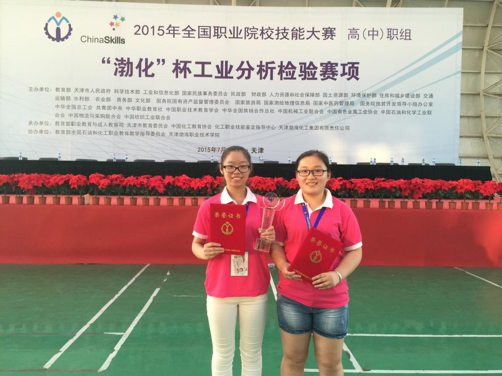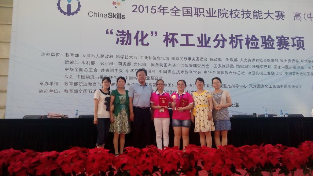 7月3日,2015年全国职业院校技能大赛中(高)职组“渤化” 杯工业分析检验赛项在天津渤海职业技术学院圆满闭赛,我院代表队发挥出色,选手孙迪迪、刘静荣获高职组大赛一等奖,赵佃英、邹芳老师获“优秀指导教师”荣誉称号。