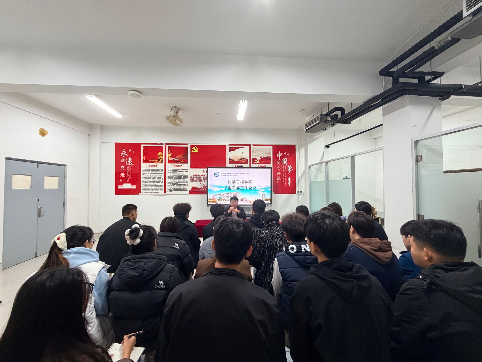 会议伊始,化学工程学院党总支负责人发表讲话。他首先肯定了过去一年学院学生干部在服务同学、协助学院管理、组织校园文化活动等方面所取得的显著成绩,并对全体学生干部的辛勤付出表示感谢。随后,他围绕“提高站位、科学管理、以身作则”三个核心关键词,对新学期学生干部工作提出了明确要求和殷切期望:一是要提高政治站位,强化责任担当;二是要坚持科学管理,提升工作效能;三是要做到以身作则,发挥模范作用。