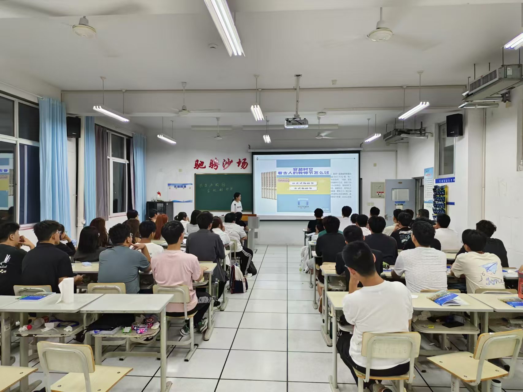 团课过程中,各班级团支书从教师节的演变历史、教师节的祝福以及教师节衍生文化等模块进行了深入浅出的讲述。他们通过生动的语言和丰富的史料,带领同学们穿越时空,了解了教师节的起源和发展,以及在不同历史时期教师节的不同庆祝方式和文化内涵。同学们也积极分享与老师之间的感人故事和成长经历,讲述了老师在学习上的悉心指导和生活中的关心帮助,以及遇到困难时老师的耐心开导和鼓励。这些真挚的分享让在场每一个人都感受到师生之间的深厚情谊,更加深刻地体会到老师的辛勤付出和无私奉献。