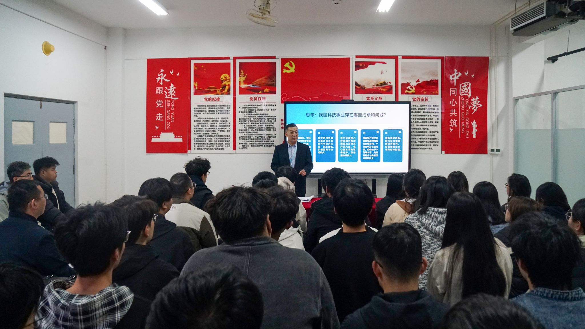 任培华首先回顾了提出实现高水平科技自立自强的时代背景。他指出,我国正处于实现中华民族伟大复兴的关键时期,加强加快实现高水平科技自立自强显得尤为迫切和重要。在新时代背景下,铸牢中华民族共同体意识不仅要求各民族在思想上、情感上实现共鸣,更需要在行动上、实践中积极推动。他从“世界科技竞争日趋激烈”“我国科技机遇挑战共存”与“加快科技自立自强步伐”三个方面与师生代表进行深入交流探讨。他指出,青年科技人才是我国科技创新发展的生力军,青年人才要大力弘扬科学家精神,在以中国式现代化全面推进中华民族伟大复兴进程中奉献青春和智慧。最后,他向青年学生提出了“在科技强国建设新征程中,新时代的大学生能做些什么?”的问题,引发同学们深深思考。