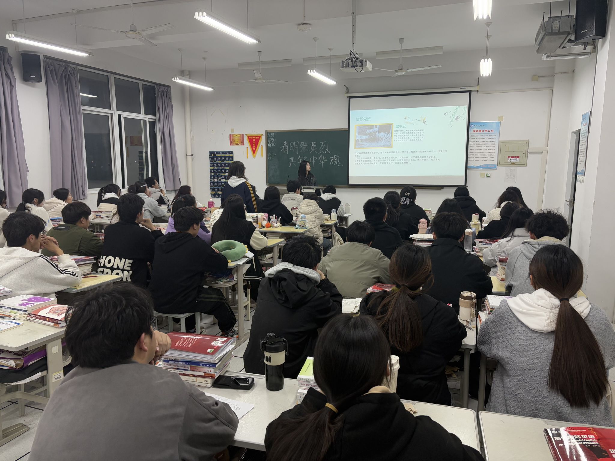 在团课过程中,各班团支书通过纪录片展播和PPT讲解等形式,向同学们生动讲述了李大钊、陈延年、刘胡兰、邱少云等革命先烈的感人事迹。李大钊同志“铁肩担道义,妙手著文章”的坚定信仰,陈延年“革命者光明磊落、视死如归”的英雄气概,刘胡兰“生的伟大,死的光荣”的无畏精神,邱少云烈火焚身仍严守纪律的钢铁意志,深深打动了在场的每一位同学。活动现场气氛庄重,同学们全神贯注,在革命先烈的光辉事迹中深刻感悟信仰的力量。团课结束后,同学们深受鼓舞,纷纷表示要以革命先烈为榜样,将爱国之情转化为刻苦学习的实际行动,让青春在全面建设社会主义现代化国家的伟大实践中绽放绚丽光彩。