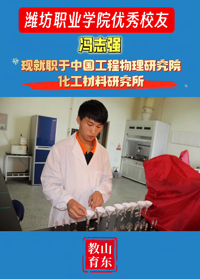 冯志强,男,2013届工业分析与检验专业(现工业分析技术专业)毕业生。在校期间,专业课程成绩名列前茅,曾获得国家奖学金和国家励志奖学金。2011年全国化学检验技能大赛中冯志强凭借过硬的技能和优良的素质带领团队获得团体一等奖,个人以全国第二名的成绩成为山东省首位获得化学检验技师资格的在校大学生,现就职于中国工程物理研究院化工材料研究所,主要从事炸药理化分析。工作期间,兢兢业业,勤奋好学,发表学术论文多篇,曾获最佳兼职奖,最佳进步奖,连续多次年度考核优秀。