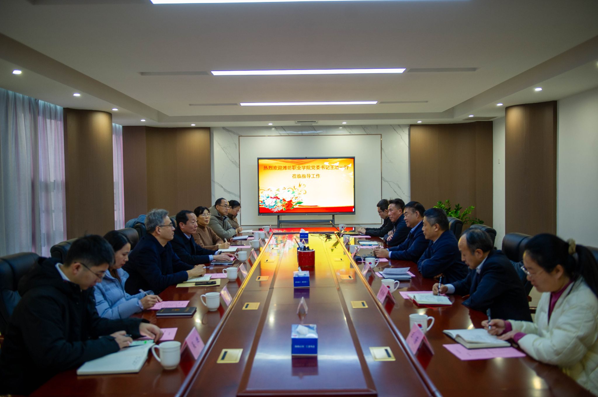 座谈会上,王浩介绍了学院办学特色、校企合作及育人成效等方面的情况,着重介绍了学院歌尔匠造中心、现场工程师班、订单班等育人模式。他指出,学院与海王化工地理位置相邻,为双方开展订单培养、专家授课、教师实践等深度合作提供了有利条件。陈美霞介绍了学院产教融合、职教出海的相关举措与成效,强调学院在服务企业 “走出去” 领域积淀了深厚经验,可根据企业实际需求量身定制人才培养方案。化学工程学院相关负责同志介绍了目前学院化工类专业设置情况。