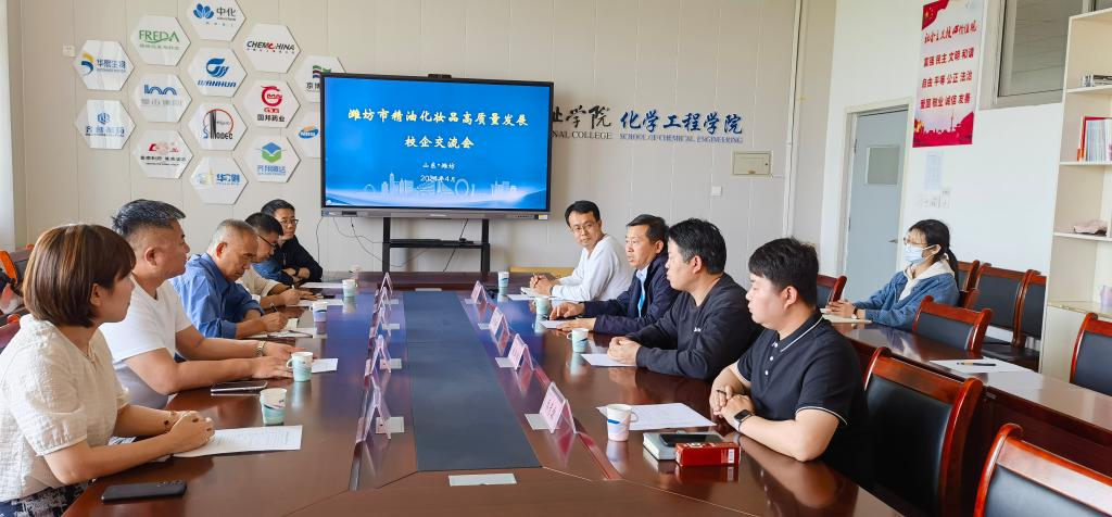 4月26日下午,化学工程学院与山东绿敷药业有限公司在滨海校区联合召开潍坊市精油化妆品高质量发展校企交流会,世界中医药学会联合会芳香健康产业分会、山东省化妆品行业协会等多家单位参加,化学工程学院党总支书记与多名专业教师参加了本次会议。