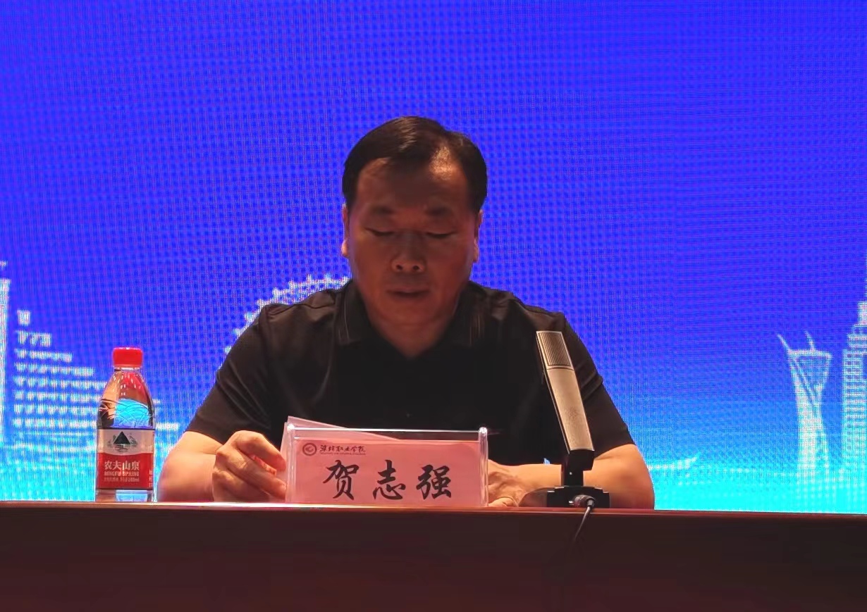 贺志强代表学院致辞。他介绍了学院近年来的发展情况和学院服务地方产业发展情况,回顾了由学院牵头成立的潍坊市安全应急管理职业教育联盟一年来的工作成效,希望全体学员珍惜机会,学有所成、学有所用,在全市防灾减灾工作中作出更大贡献。