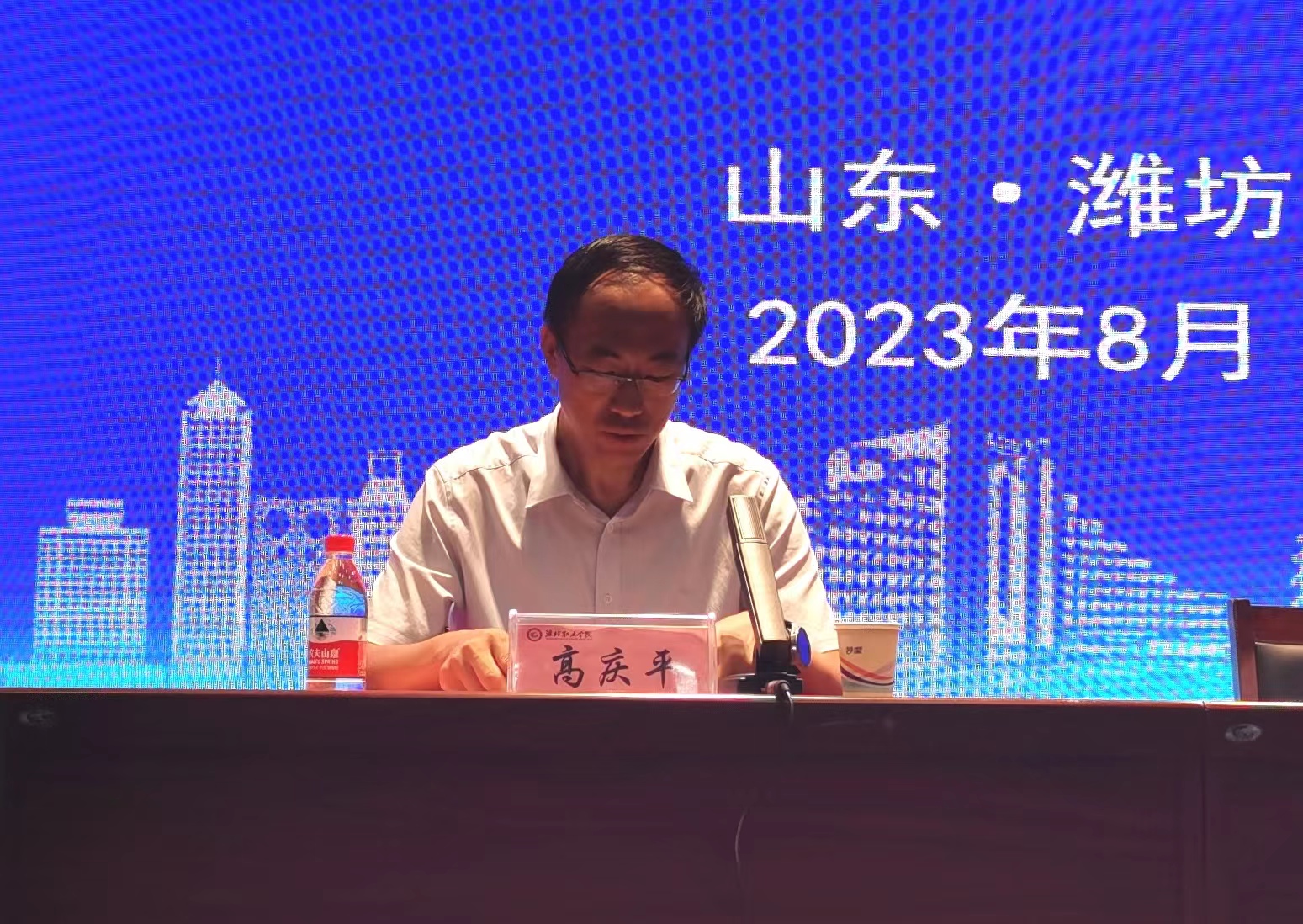 贺志强代表学院致辞。他介绍了学院近年来的发展情况和学院服务地方产业发展情况,回顾了由学院牵头成立的潍坊市安全应急管理职业教育联盟一年来的工作成效,希望全体学员珍惜机会,学有所成、学有所用,在全市防灾减灾工作中作出更大贡献。