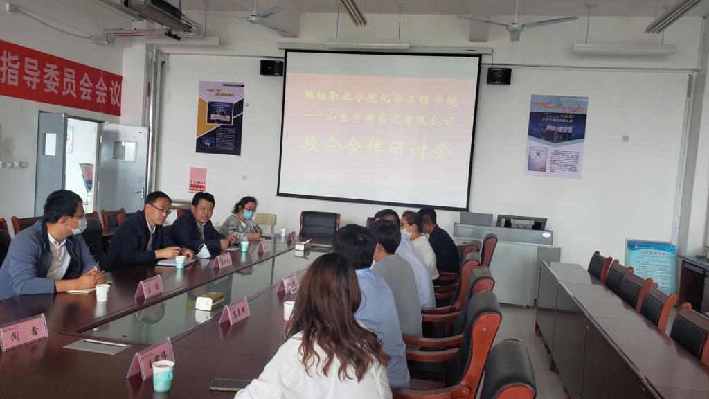 5月22日下午,山东京博石油化工有限责任公司厂长董全文一行6人到化学工程学院洽谈校企合作事宜,化学工程学院主要负责同志和相关教师参加洽谈。 化学工程学院负责人介绍了学院专业设置、师资队伍、实训基地建设及校企合作发展成果。董全文介绍了近两年内公司大型项目建设及人才需求情况,并对化工学院毕业生在工作中体现出的的专业素养、综合素质给与高度评价,表达了校企共建校内生产性实训基地及建立长期稳定合作关系的愿望。双方就京博现代学徒制班级的培养模式、课程建设、教材开发、入岗时间等进行了深入讨论。