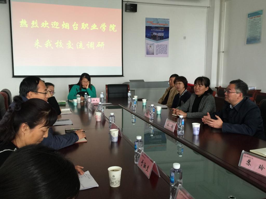 化学工程学院负责同志向来访客人介绍了近年来化学工程学院在专业建设、教学成果、现代学徒制、实训室建设、技能大赛等多方面取得的成果。来访客人对化学工程学院取得的成果表示赞赏并介绍了烟台职业学院应用化工技术专业的相关情况,表示希望在专业建设等方面加强“校校合作”,共同进步。