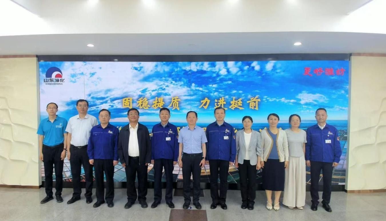 在山东海化集团,王浩对集团股权划转以来取得的成就表示赞赏。他说,潍坊职业学院始终以服务地方经济社会发展为己任,致力于将自身优势与地方产业发展紧密融合,希望双方在既往良好合作基础上,积极寻求与发展需求精准匹配的合作领域,服务企业健康发展。集团党委书记、董事长孙令波介绍了集团的历史沿革及产业布局,表示校企双方在产教融合、科研攻关、技术转化与人才培养等方面存在高度契合的连接点,期待发挥各自优势,推动合作走深走实。双方就产学研合作、高层次人才互聘共享、企业员工培训等方面进行了深入交流。调研团队实地参观了“奋进海化党建展厅”、纯碱厂中控室、现代海洋化工中试基地等,双方表示,将通过双方长期稳定的合作,共同推动潍坊海洋化工产业创新发展。