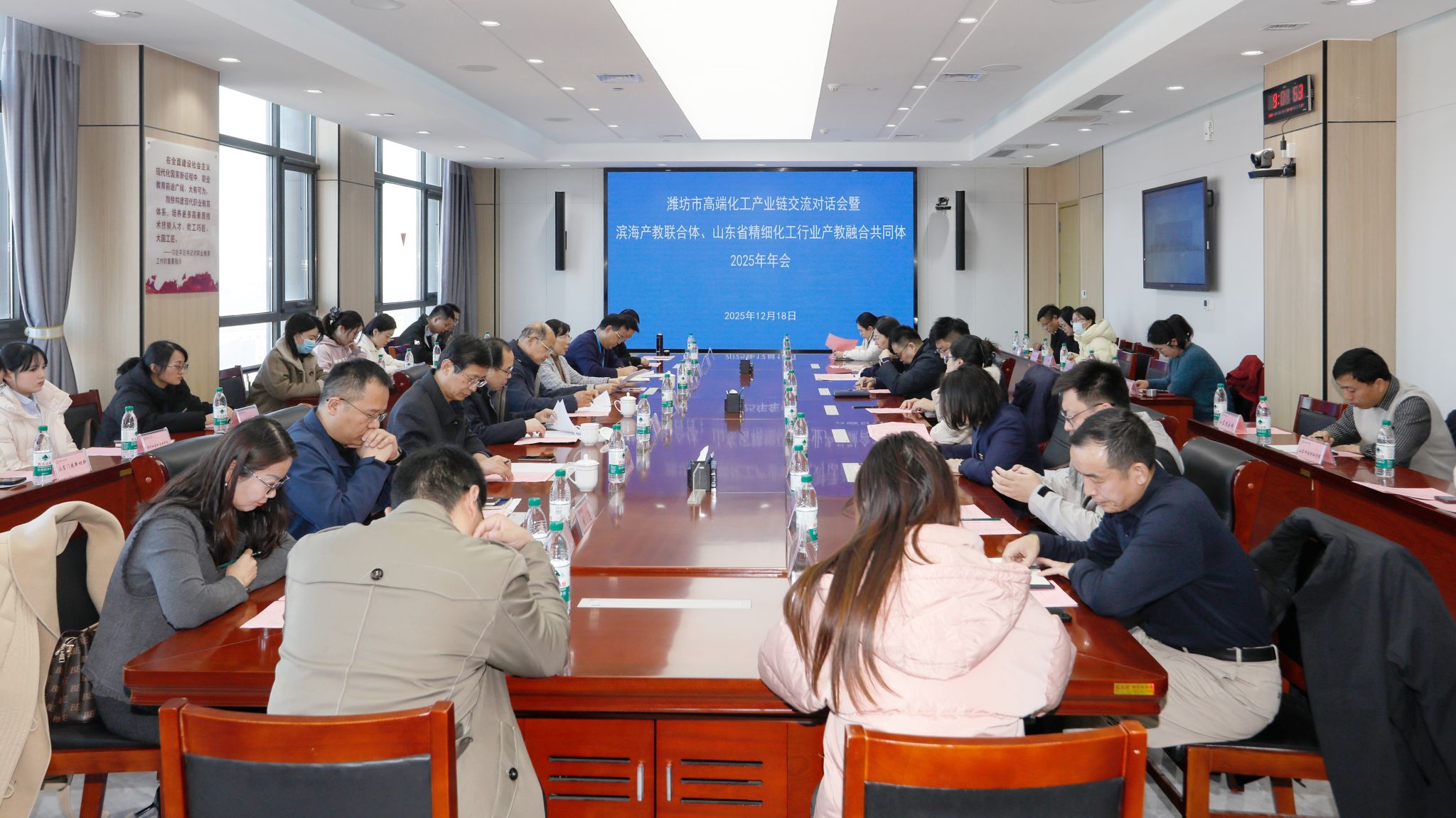 12月18日,潍坊市高端化工产业链交流对话会暨滨海产教联合体、山东省精细化工行业产教融合共同体2025年年会在潍坊职业学院滨海校区举行。学院党委书记王浩会见参会单位负责人。潍坊市产教融合研究院副院长马玉才,滨海经济技术开发区党政办公室二级专员高升明,山东(潍坊)海洋科技大学园管理办公室党组成员、副主任谭树田,学院副院长陈美霞,滨海区产教联合体、山东省精细化工行业产教融合共同体副理事长单位及成员单位代表,学院科技处(产学研合作中心)、化学工程学院负责同志和教师代表共计50余人参会。