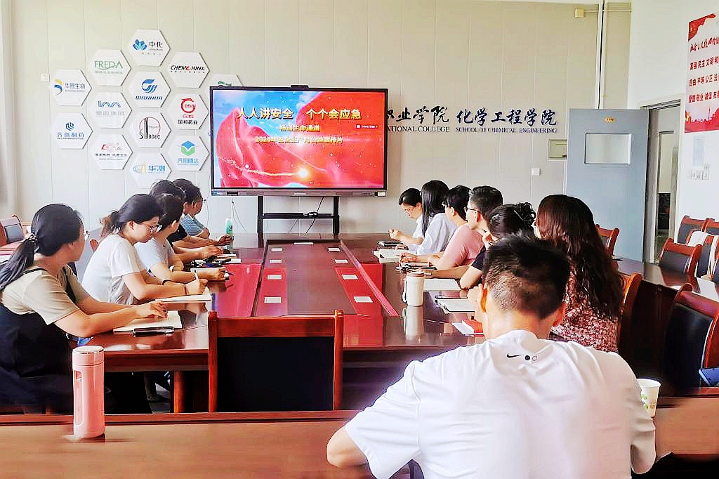 为贯彻落实学院2024年“安全生产月”工作安排和要求,营造“人人讲安全、个个会应急”的校园安全环境,6月中旬,化学工程学院组织开展了安全生产月系列活动。 首先,化学工程学院组织全体教职工集中观看了《生命通道》《安全生产责任在肩》等安全警示教育片,党总支负责人带领全体教师认真学习了习近平总书记关于安全生产的重要论述和重要指示批示精神,并对“安全生产月”的具体工作进行了全面部署。他强调:一是高度重视,充分认识到安全工作的长期性、重要性,将校园安全工作放到各项工作首位;二是聚焦重点,集中排查,建立整改台账;三是明确责任分工,强化责任落实;四是强化宣传宣教,开展“畅通生命通道”系列疏散逃生演练、安全知识答题等宣传宣教活动,营造浓厚校园安全氛围。