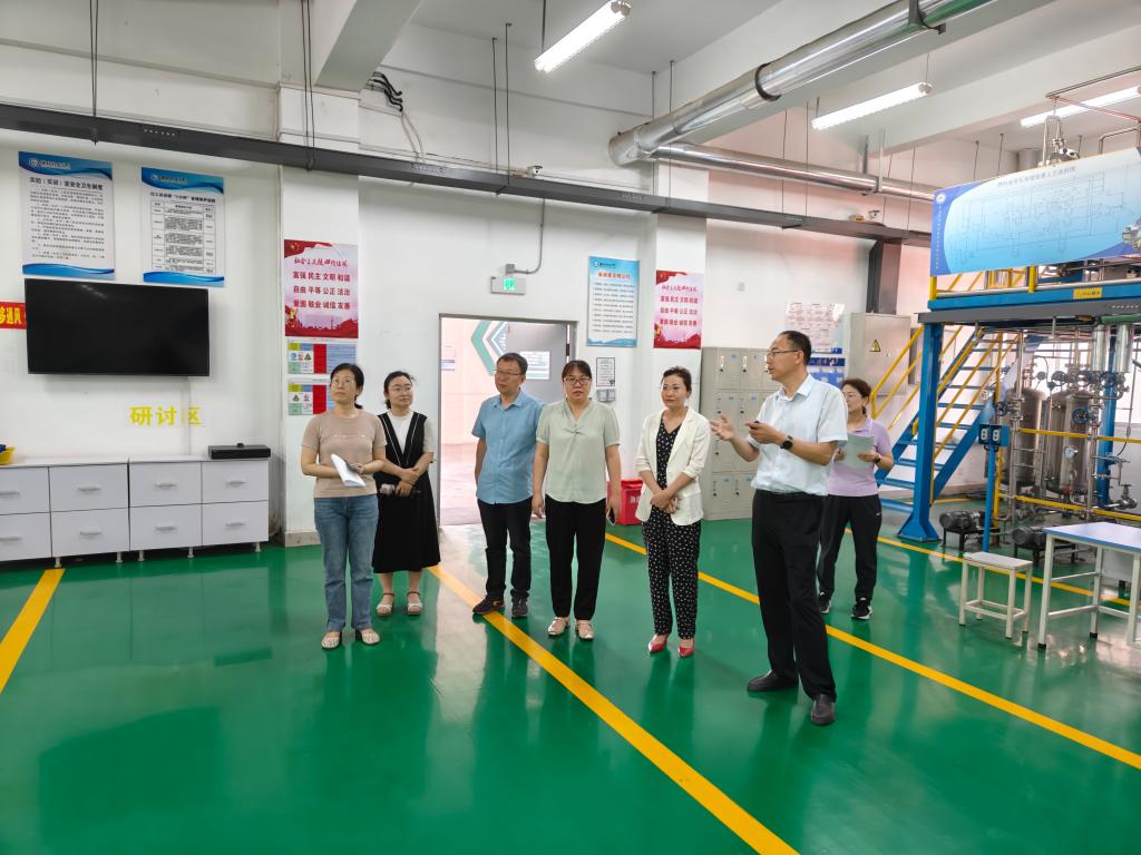 化学工程学院负责同志陪同考察了化学工程学院精馏实训区、化工生产实训车间、分析检验实训区、危化品特种作业培训基地等多个实验实训区域,介绍了学院的专业群建设、实训室建设情况,重点介绍了学院在人才培养、技能竞赛、教科研项目、校企合作及社会培训等方面取得的成效。