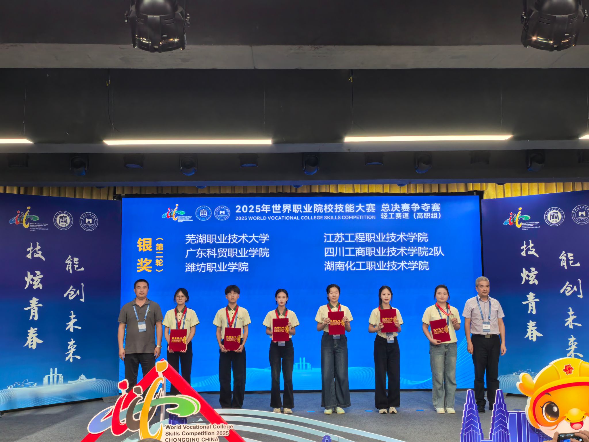 8月28日,世界职业院校技能大赛总决赛争夺赛轻工赛道(高职组)在重庆圆满落幕。经过激烈角逐,我院化妆品技术专业王萌、刘苏亭老师指导,王秀、马永菲、张浩鑫三名同学组成的参赛团队凭借出色表现荣获银奖,充分展现了我院在化妆品技术专业人才培养方面的过硬实力。